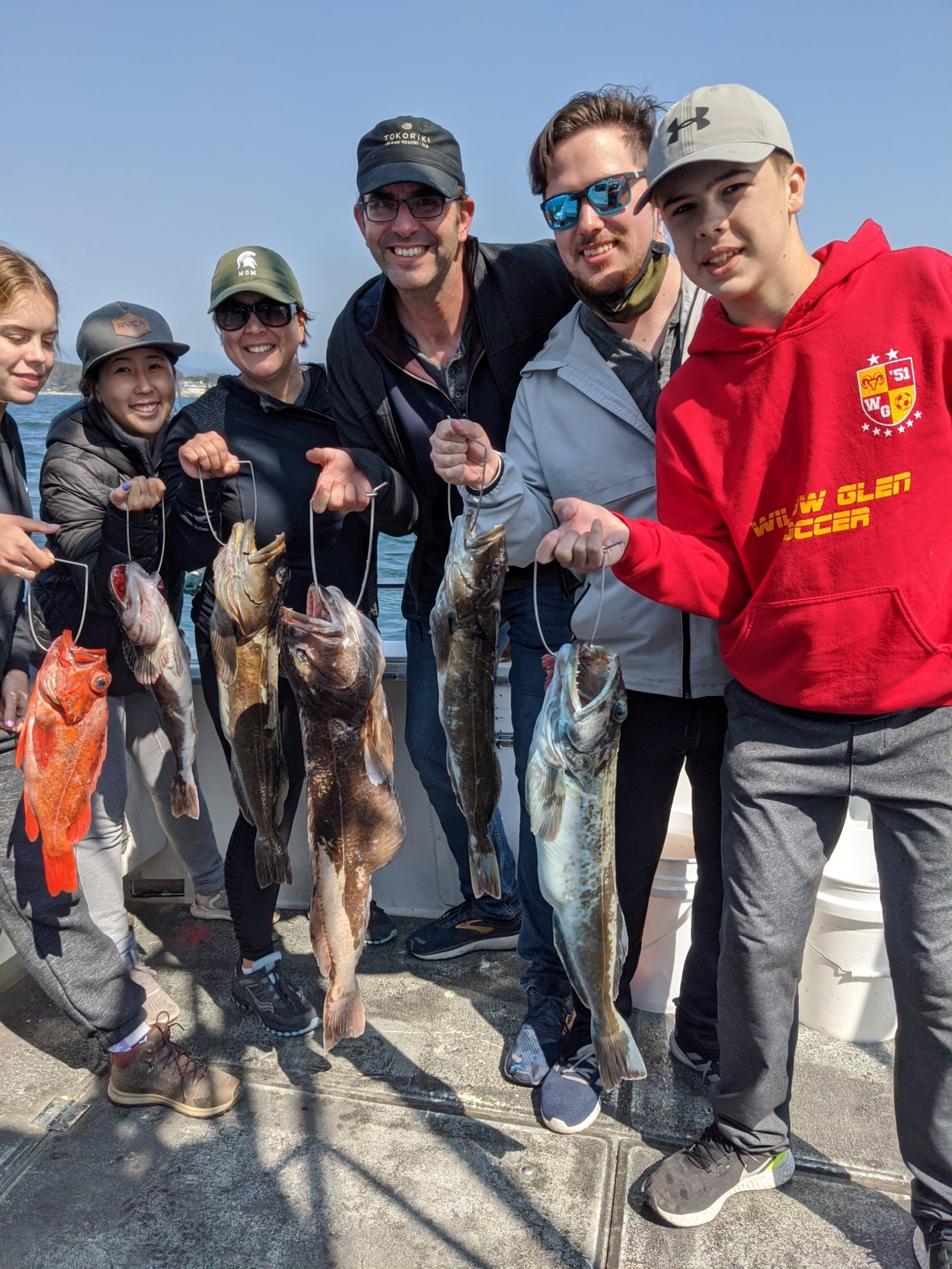 Took a while to get the fish to bite but once they started it was non-stop action for limits of blue, olive, canary, brown, and red pacific snapper. Mom said “our best fishing trip ever!”.