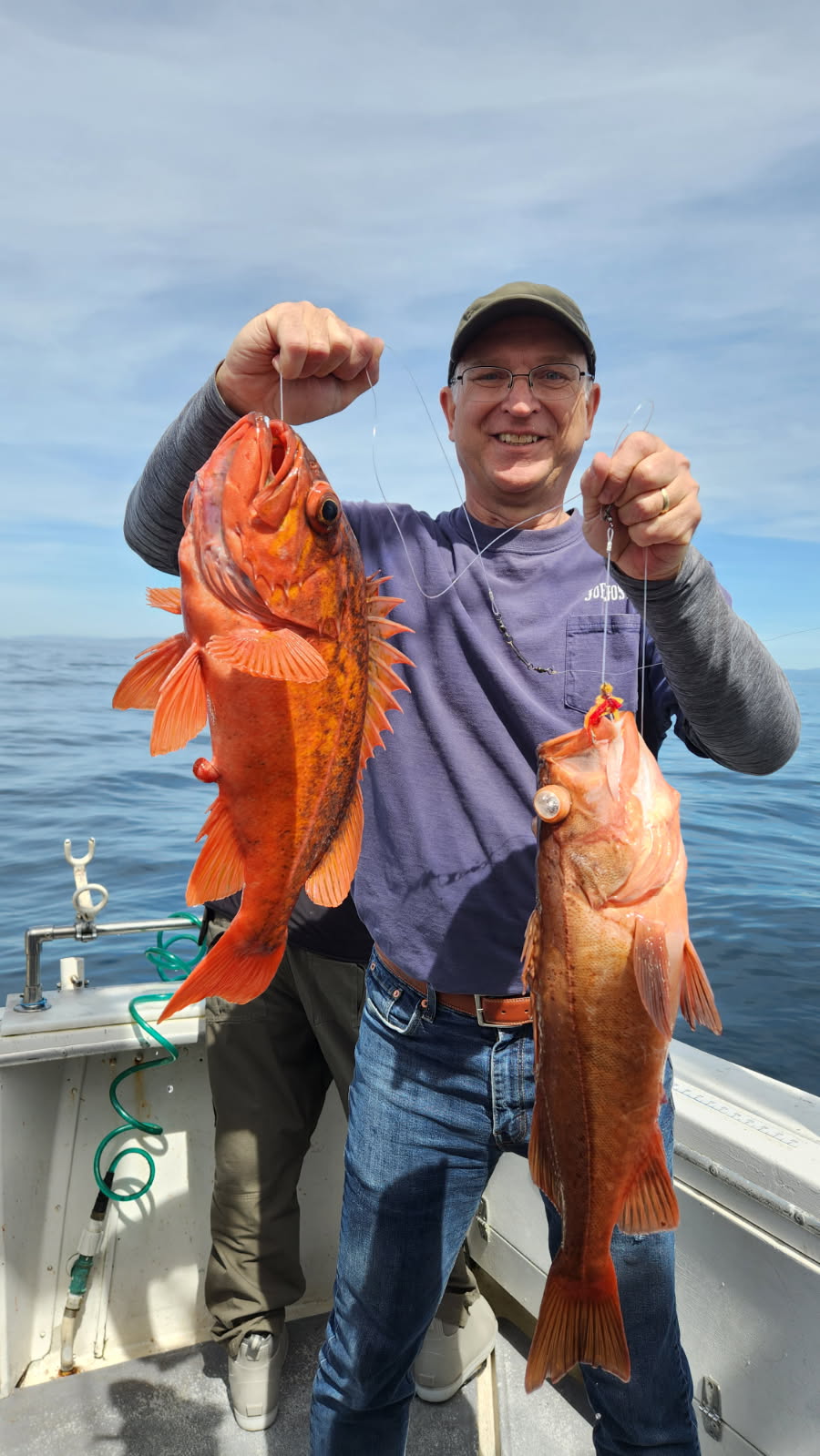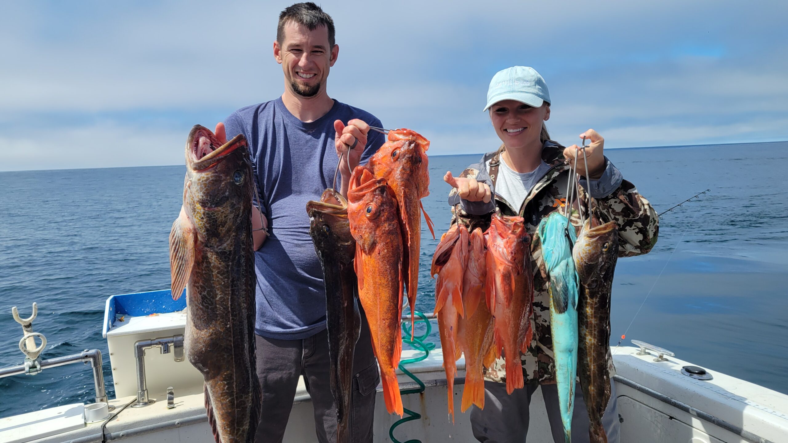 The wind and water conditions were a bit challenging today, but we still managed to come home with near limits of lingcod and some nice fat red rockcod.