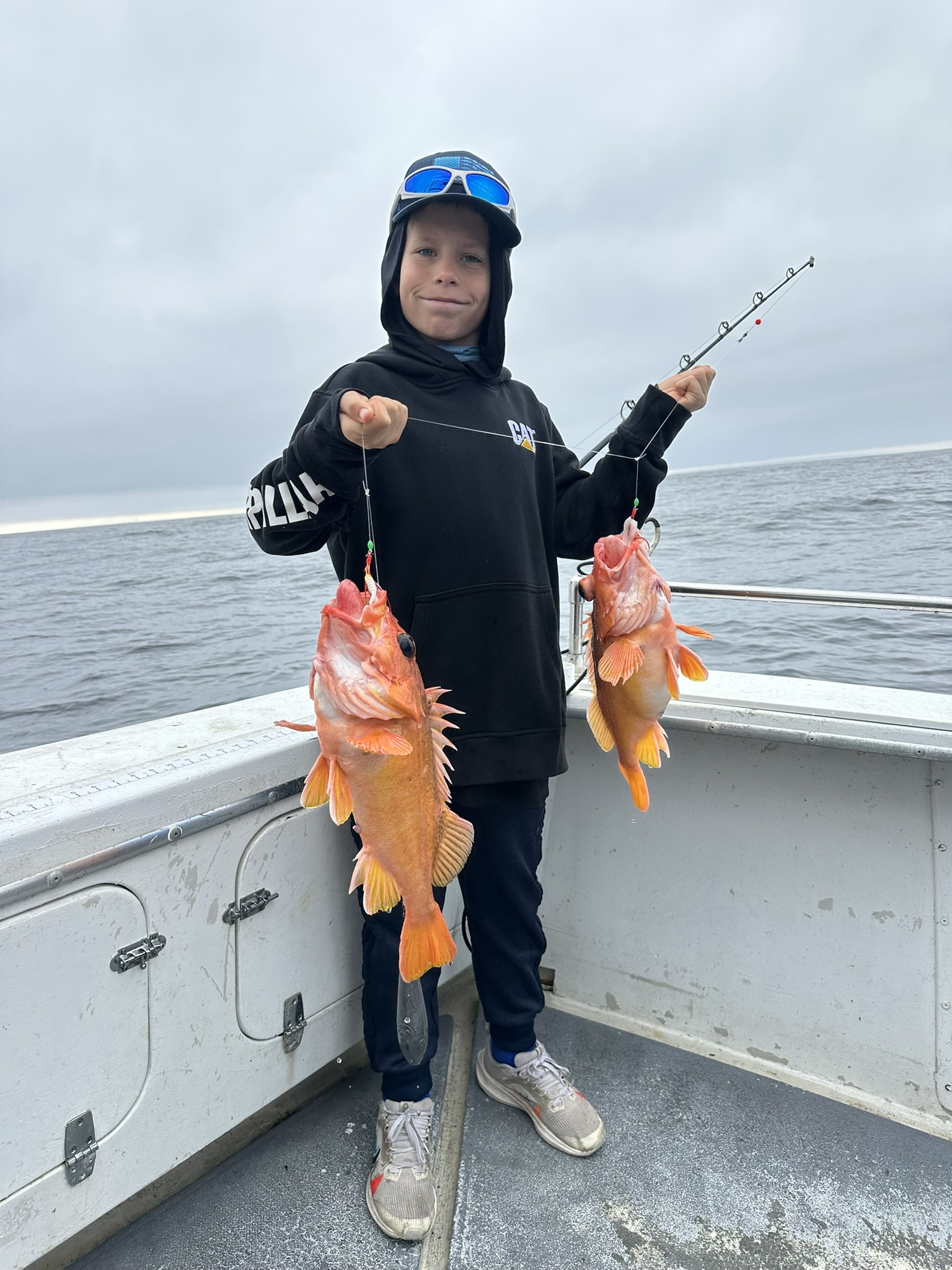 We ran back out to the Jurassic Park deep grounds and absolutely *smashed the rockcod*. It was *non-stop action* from the first drop, with steady hookups and plenty of double-ups keeping the rail hot all morning.
