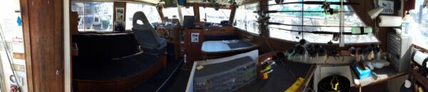 The MEGA-BITE is a very comfortable 32’ Uniflite Sport Sedan, offering 160 square feet of enclosed cabin space to keep you warm and dry. Her twin “Go-Green” gasoline 5.7-liter Vortec engines deliver a combined 630 horsepower, providing a smooth, reliable ride — without the diesel fumes.